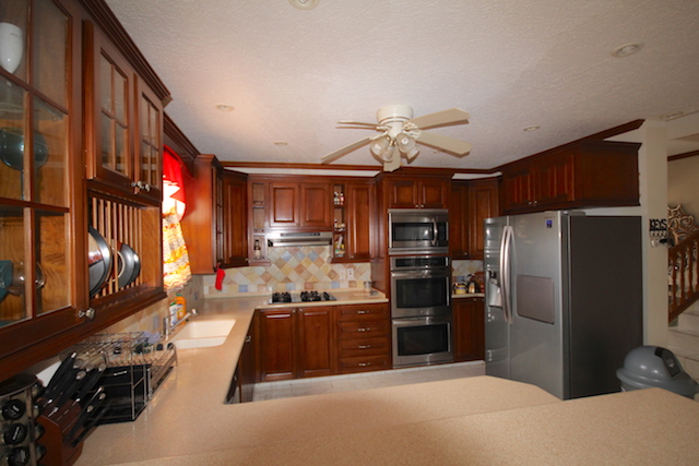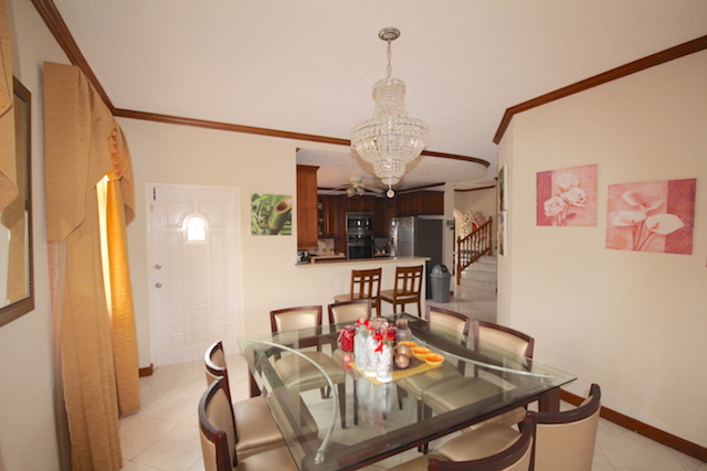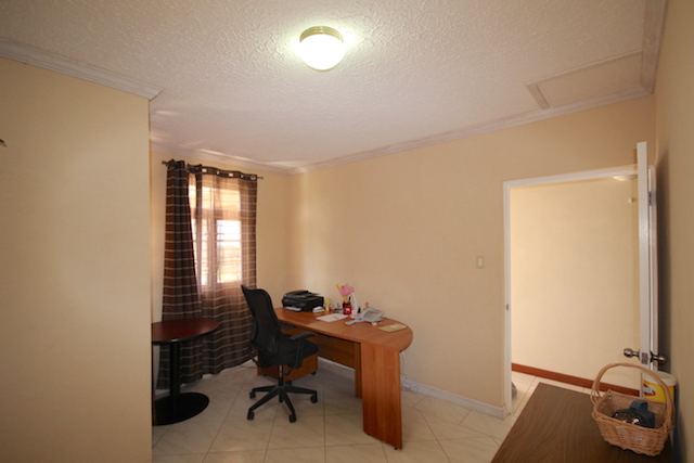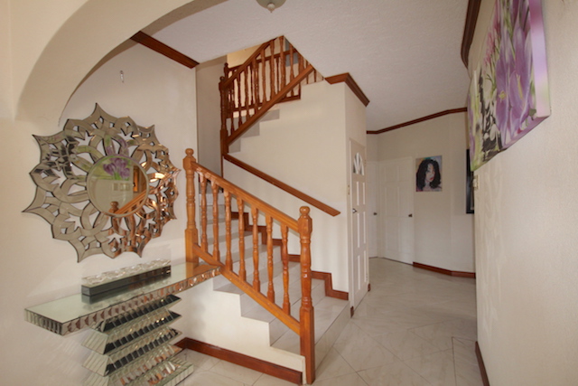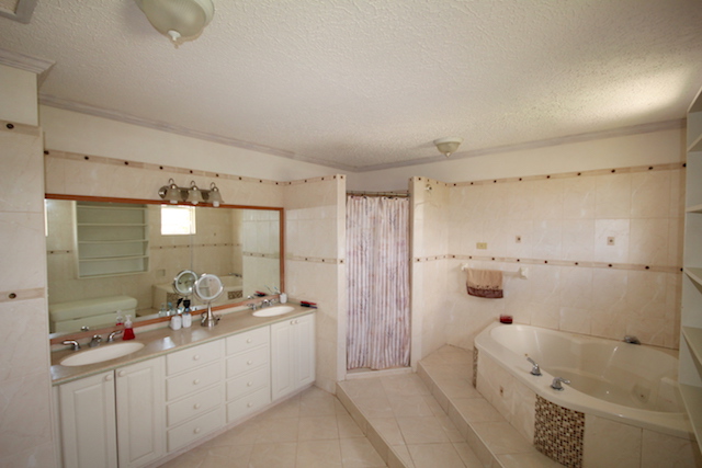From entry you have a spacious living area with a separate TV room. Just off the dining area is the generous size kitchen fitted with modern appliances. Also on the ground floor find two bedrooms, full bathroom, laundry with exit to the double garage with automatic doors. Two other bedrooms are upstairs including the master suite that includes a walk-in-closet, his and her sinks, jacuzzi and shower. The study is currently set up as a gym.